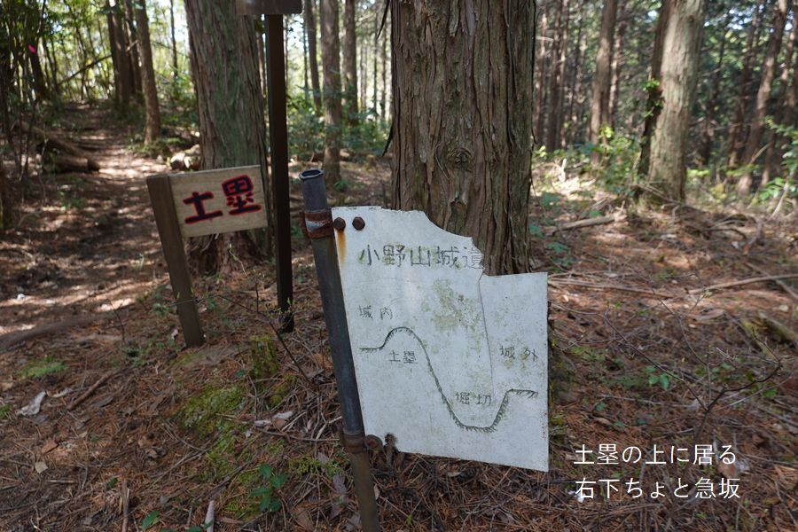 | 古道を歩き、左折急坂登って行くと大仏山。2台の反射板が立ってる。真ん中に国土地理院の三角点。今日は草刈りしてありポツンと三角点がでてた。 高澤古道は見坂峠へ下っている西の方がお地蔵様の番号若くなる。更に西は樋ヶ洞ひがほらから、口野々へ通じている。地図見ると西の古城山とも接してる。 本城山は美濃でも一~二の規模を誇る城と書いて有り。1月に登った菩提山も規模大きかったがこちらの本城山の方が大きい。菩提山城跡の竹中半兵衛公は六千貫。石に直すと一万二千石だそうで。五公五民だと二万四千石。江戸時代の軍役は五十石で1名なので480人の武士・足軽を雇っていた。この城は竹中氏城より規模大きいから倍の800人から千名は居いないと守れない感じの城跡。山の廻りに町や村落少なそうだから何処まで領地有ったんだろう。麓の富野とか小野・神野も領地なのか。いや~勝手にロマンを感じてるから、想像するとあきないです。 |
