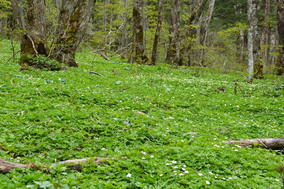 | 吊尾根の画像例年より残雪多いデス白が多い。17日が大雨強風で18日の画像は雪少くない。ニリンソウも咲いてる花が少ない桜みたいに言うと三分咲き、雪の関係で満開じゃないよ。昨年は5月18日頃に上高地。 |